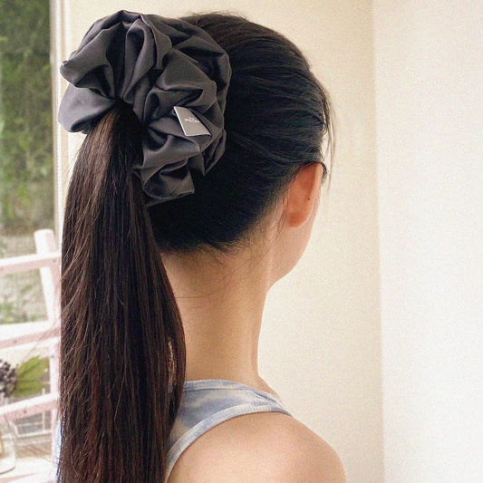 緞面鐵灰色髮圈 Satin Iron Gray Scrunchie - XL