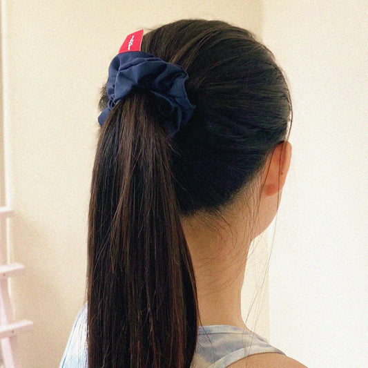 緞面深藍色髮圈 Satin Navy blue Scrunchie - XL