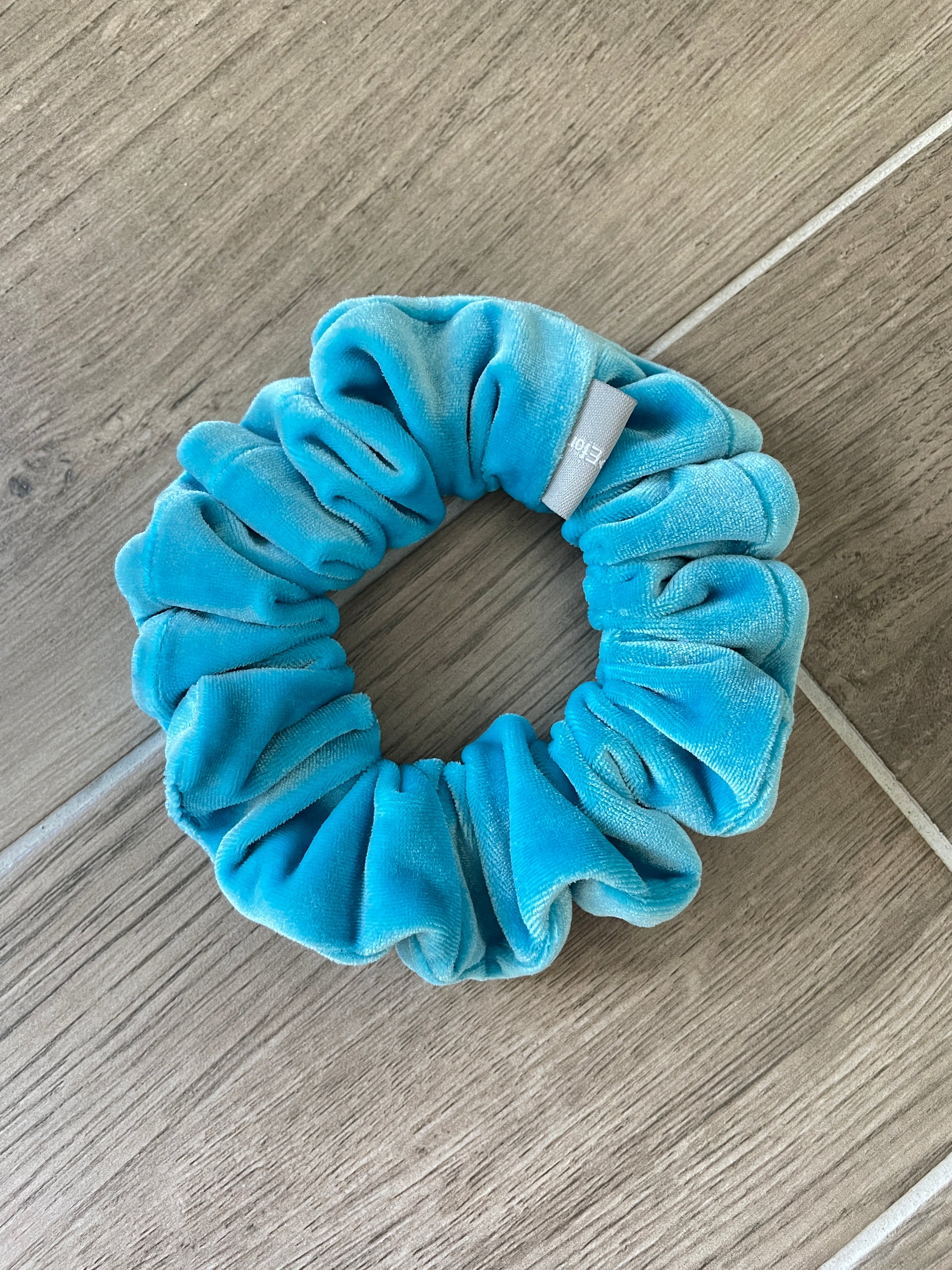 奢華絨水藍色髮圈 Luxe Velvet aqua blue Scrunchie - M